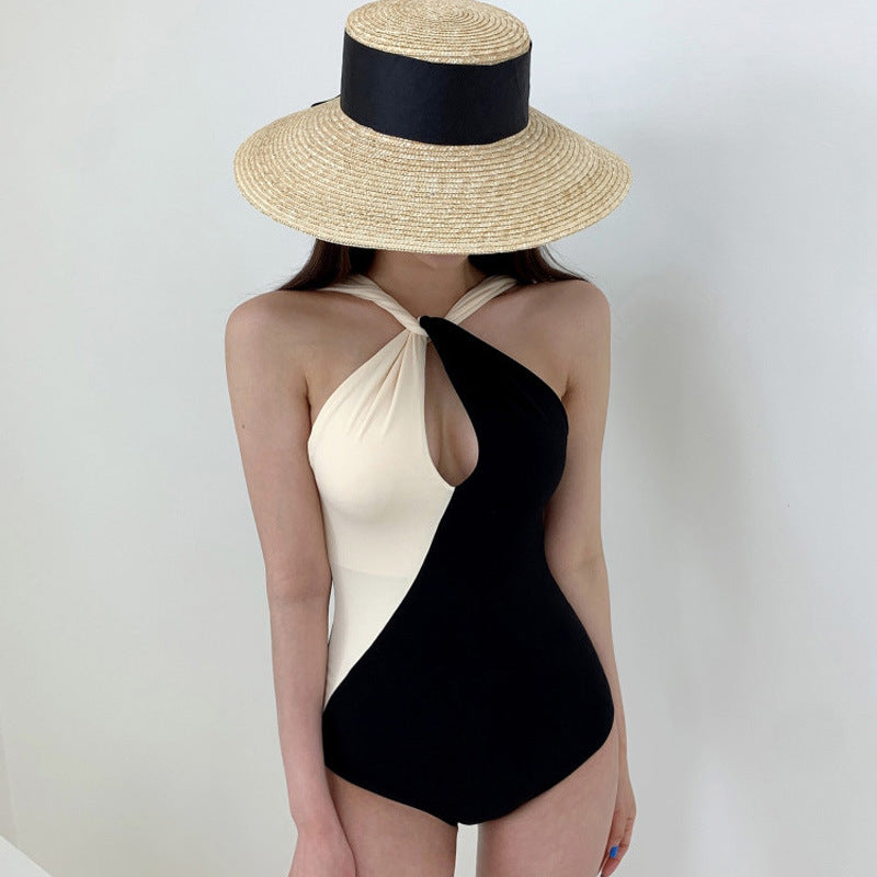 ワンピース水着 フェミニン 無地 透かし彫り 超盛れる 背中開き お腹カバー セクシー M~XL